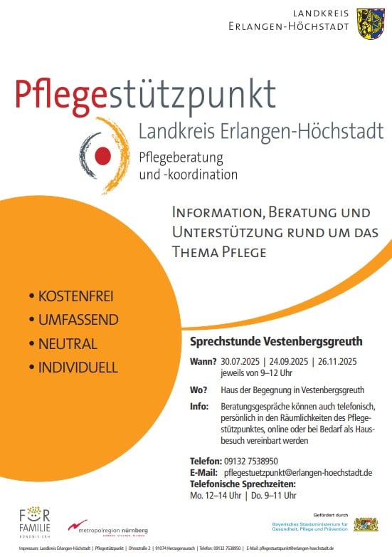 Der Pflegestützpunkt des Landkreises von Herzogenaurach kommt zur Sprechstunde nach Vestenbergsgreuth ins Haus der Begegnung.